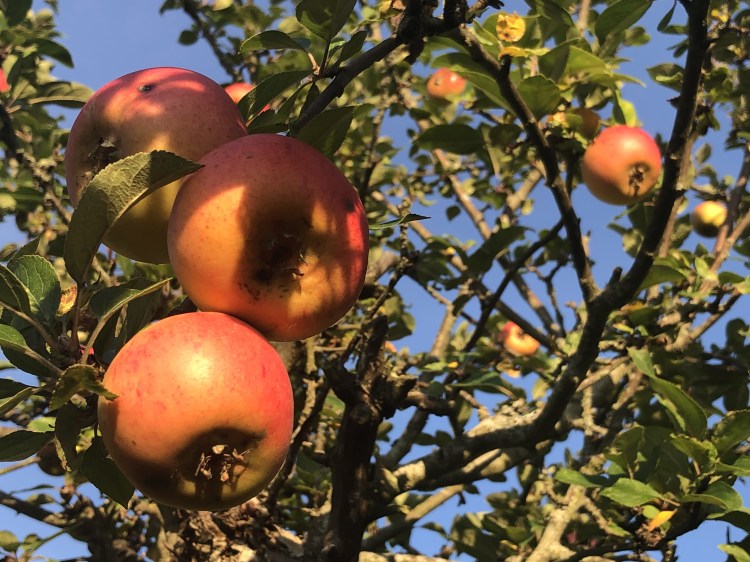 17 äppelträd av flera sorter finns kvar från planteringen som gjordes 1918. Det räcker gott till äppelmust, äppelmos och massa pajer och gottigheter.