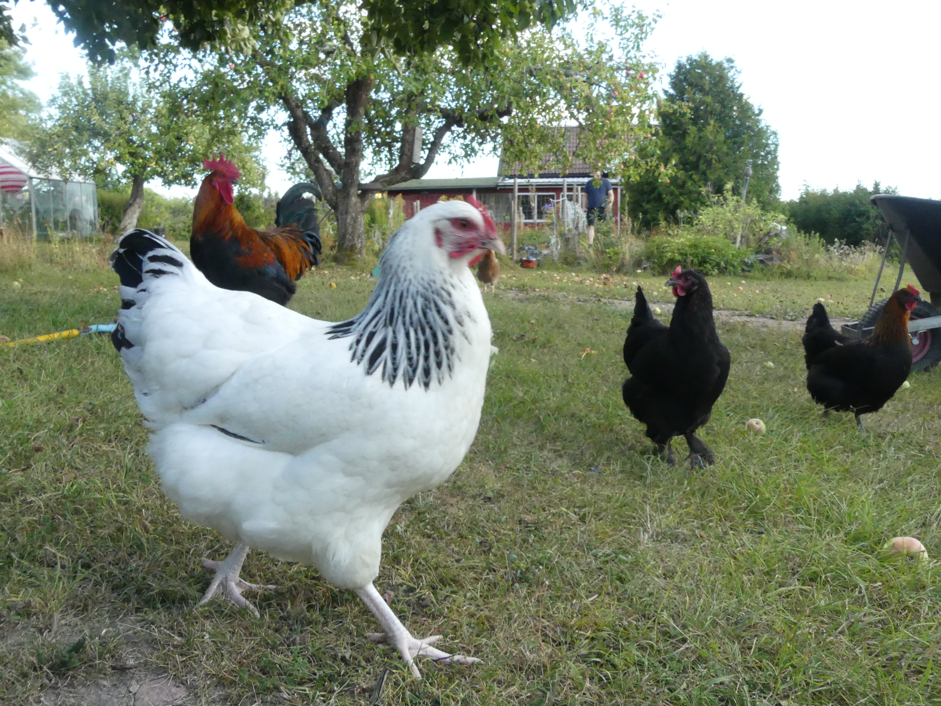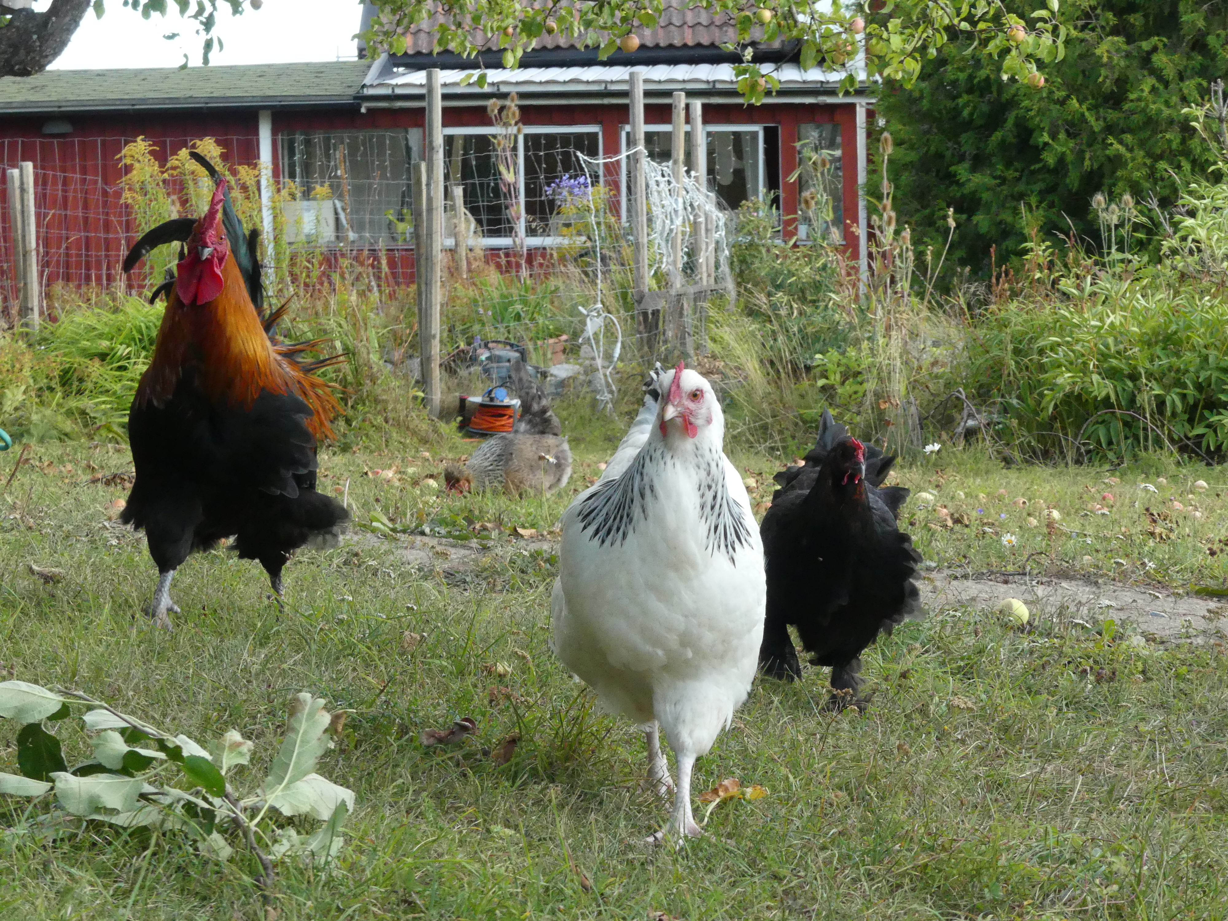 I maj 2019 flyttade Pettsson och hans hönor in i det gamla dasset i äppelträdgården. Här lever de glatt och sommartid njuter de av hela trädgården och sprätter i jorden.