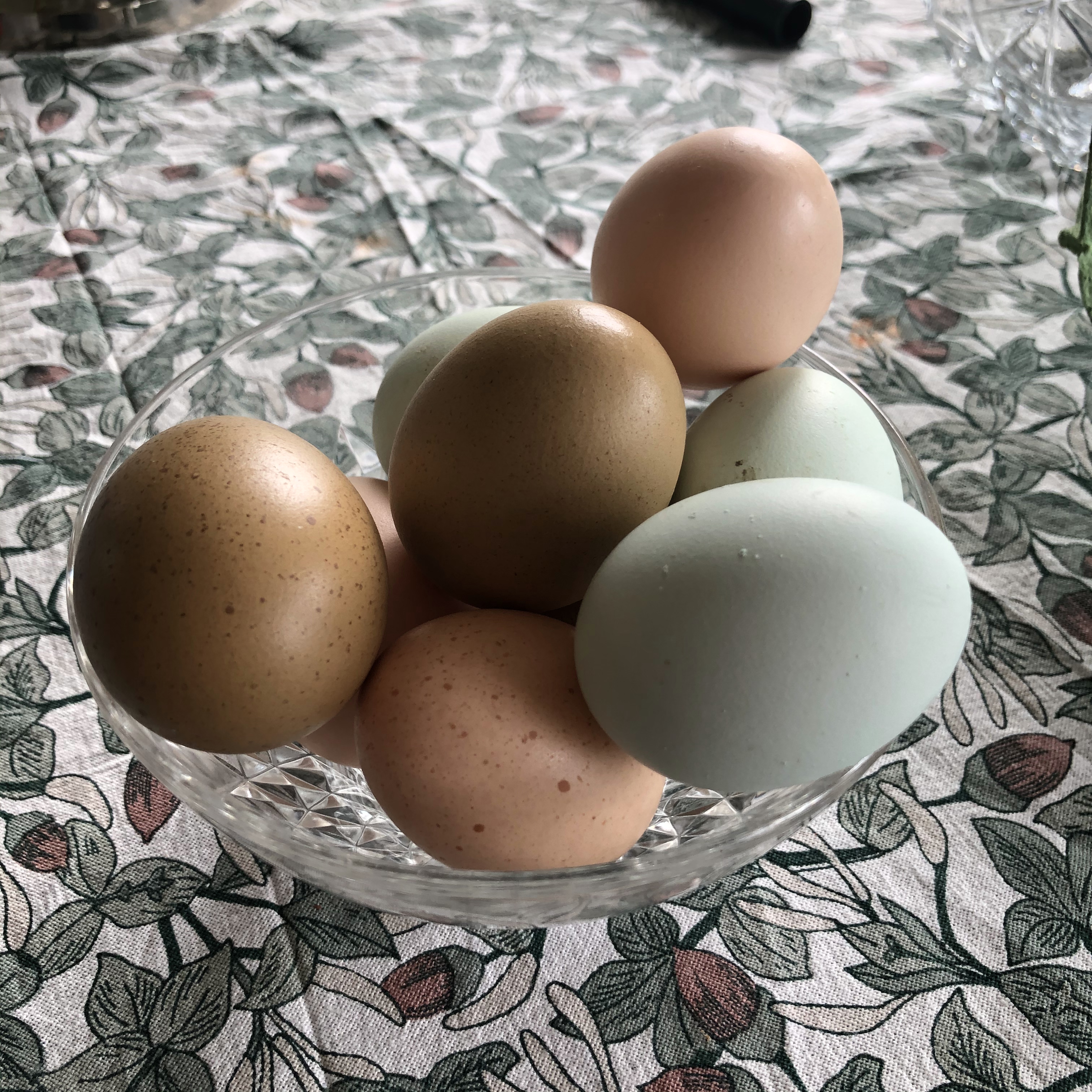 Flocken består av marantuppen Pettsson och 3 maranhönor. Dessa lägger bruna ägg.